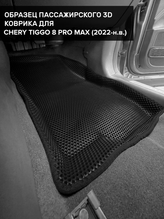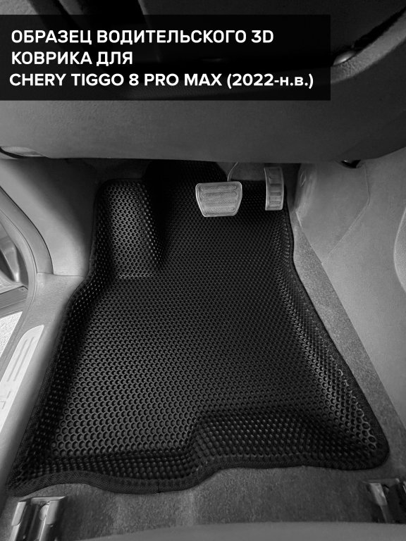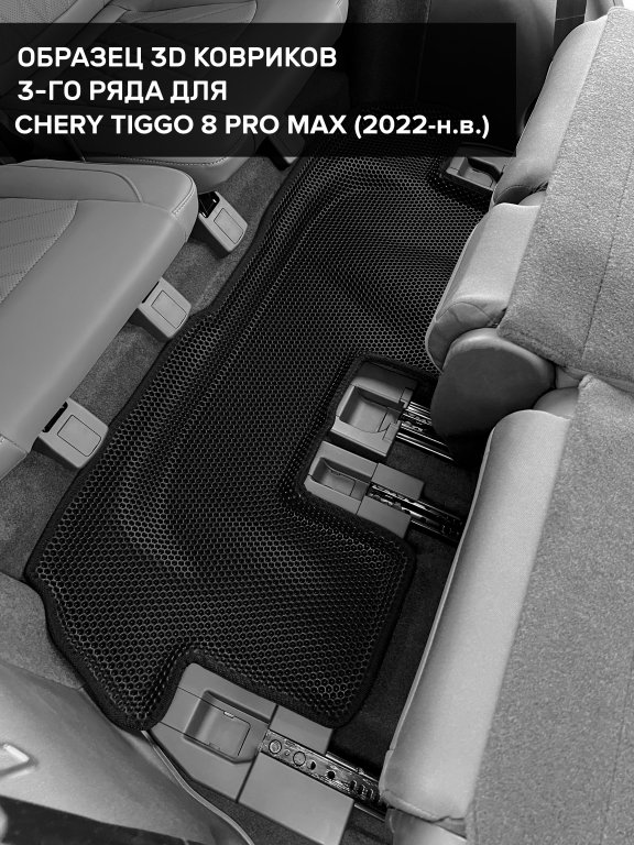 Автомобильные 3д коврики для Chery Tiggo 8 Pro Max (2022-н.в.) в салон авто и багажник сделаны из инновационного полимерного материала EVA, изысканная структура в виде ячеек не дает воде, пыли и снегу разлетаться по салону машины и багажнику. 3д коврики зафиксированы на полу определенными клипсами, соответствующими Chery Tiggo 8 Pro Max (2022-н.в.), и не двигаются в процессе езды.