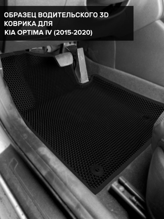 Автомобильные 3д коврики для Kia Optima IV (2015-2020) в салон авто и багажник сделаны из инновационного полимерного материала EVA, изысканная структура в виде ячеек не дает воде, пыли и снегу разлетаться по салону машины и багажнику. 3д коврики зафиксированы на полу определенными клипсами, соответствующими Kia Optima IV (2015-2020), и не двигаются в процессе езды.