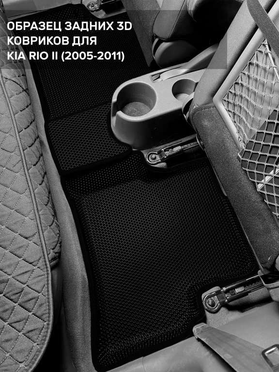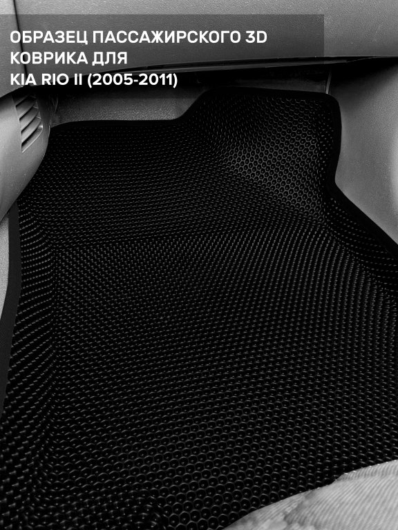 Автомобильные 3д коврики для Kia Rio II седан, хэтчбек (2005-2011) в салон авто и багажник сделаны из инновационного полимерного материала EVA, изысканная структура в виде ячеек не дает воде, пыли и снегу разлетаться по салону машины и багажнику. 3д коврики зафиксированы на полу определенными клипсами, соответствующими Kia Rio II седан, хэтчбек (2005-2011), и не двигаются в процессе езды.