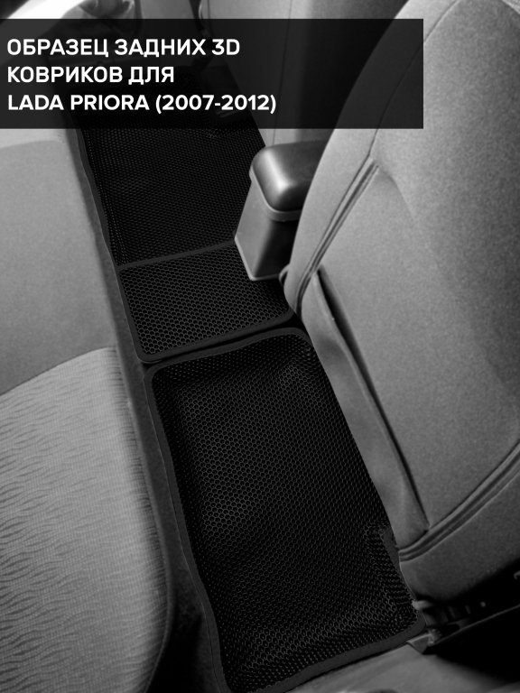 Автомобильные 3д коврики для Lada Priora (2007-2013) в салон авто и багажник сделаны из инновационного полимерного материала EVA, изысканная структура в виде ячеек не дает воде, пыли и снегу разлетаться по салону машины и багажнику. 3д коврики зафиксированы на полу определенными клипсами, соответствующими Lada Priora (2007-2013), и не двигаются в процессе езды.