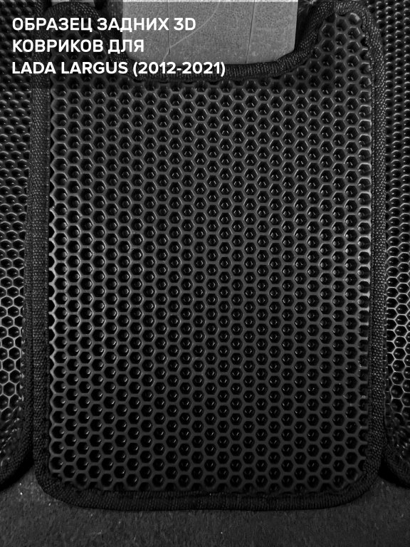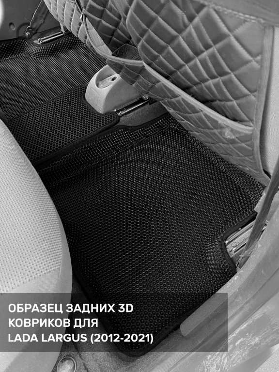 Автомобильные 3д коврики для Lada Largus I, 5 мест, дорест (2012-2021) в салон авто и багажник сделаны из инновационного полимерного материала EVA, изысканная структура в виде ячеек не дает воде, пыли и снегу разлетаться по салону машины и багажнику. 3д коврики зафиксированы на полу определенными клипсами, соответствующими Lada Largus I, 5 мест, дорест (2012-2021), и не двигаются в процессе езды.